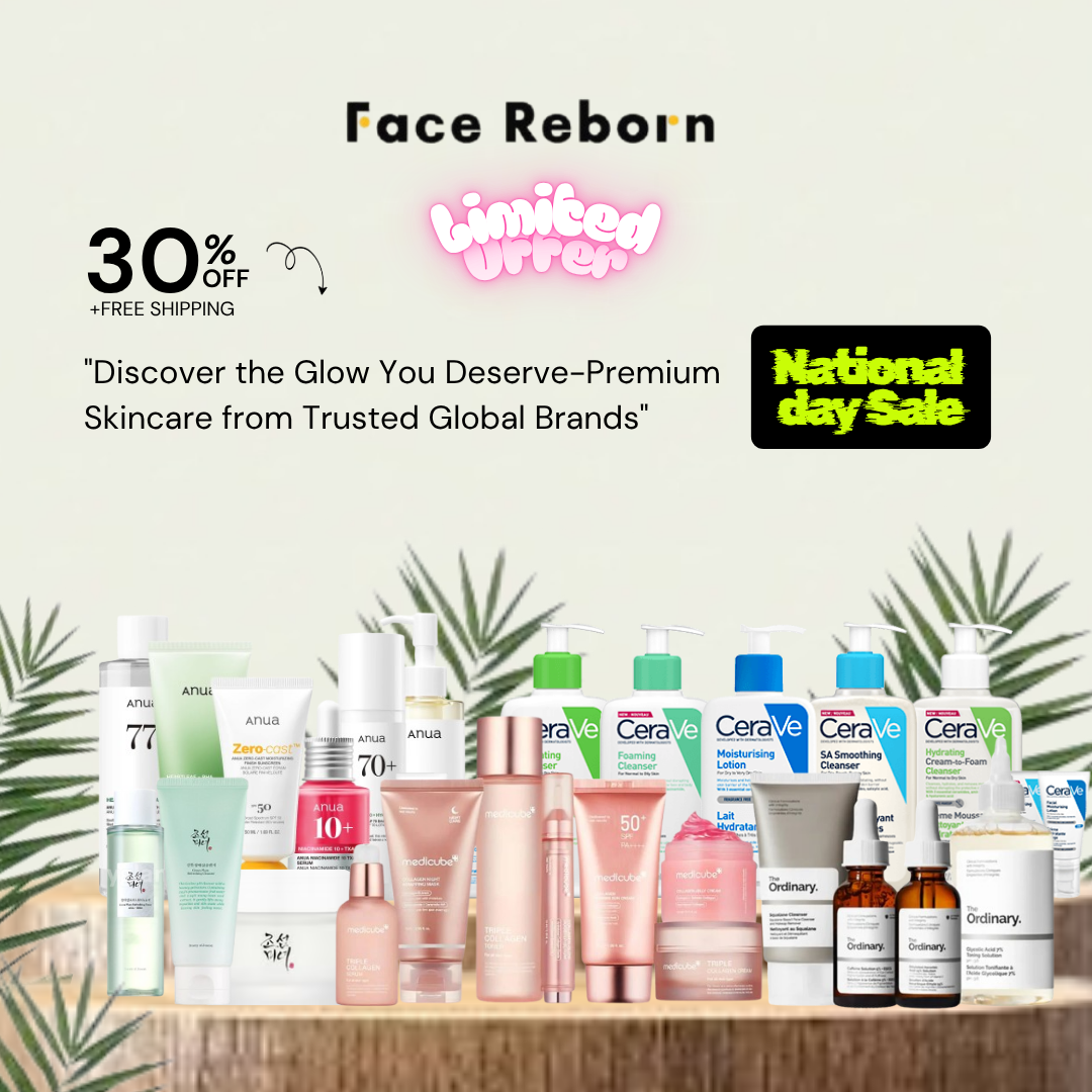 Face Reborn is a premium UAE-based skincare destination offering authentic, dermatologist-approved products from trusted global brands Like (CeraVe, anua The Ordinary, La Roche-Posay, COSRX, Centella, Some By Mi, DR-RASHEL, Medicube, Neutrogena, I am from, Beauty of Joseon). Our curated collection includes serums, moisturizers, cleansers, Sunscreens, Toners, Eye Creams, Face Masks and targeted essentials designed for every skin concern.